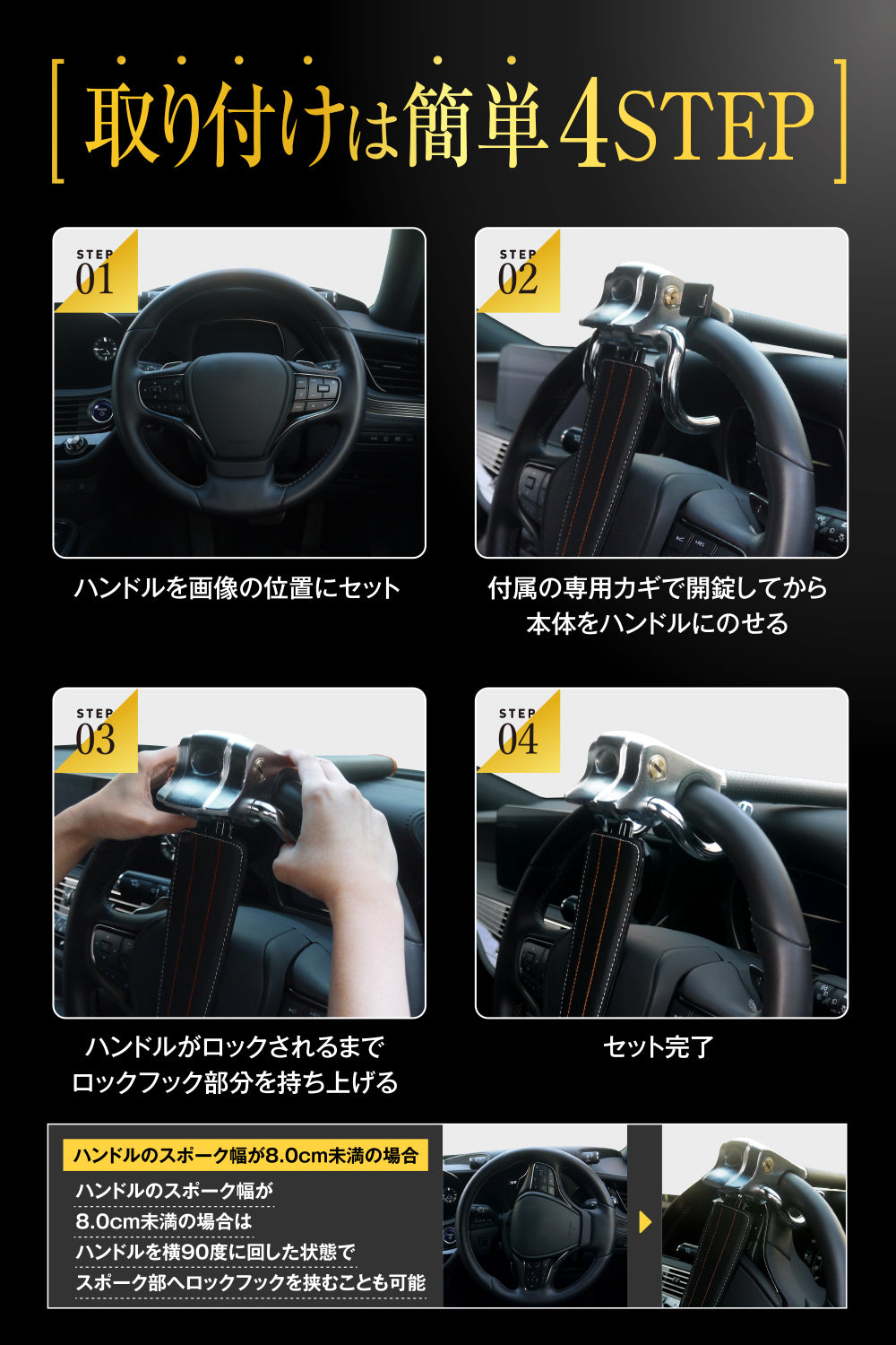 ✅【 充実の “専用カギ 2本” が付属 】複製されにくいデザインの鍵でしっかりとガード : 車のハンドルに取り付けて固定し、車の盗難を防止します。万が一、車内に侵入されても、専用の鍵でロックを解除しない限りハンドル操作が難しく、持ち去ることは困難となります。