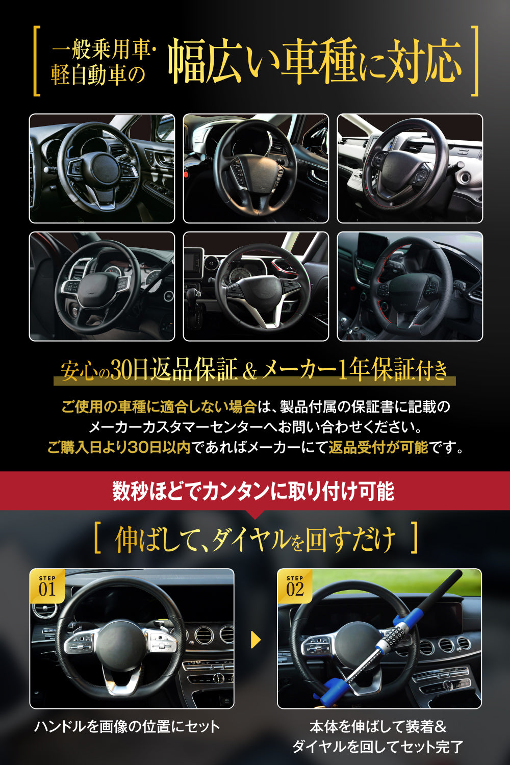 ✅【 一般乗用車・軽自動車の幅広い車種に対応 】ハンドルのサイズに合わせ、製品を引き伸ばしてサイズ調整が可能。また、ハンドルの位置やハンドルの形状、車内の環境などに合わせて様々な取り付け方が可能です。一般乗用車・軽自動車の幅広い車種に対応します。